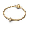 Kλιπ με επίστρωση χρυσού 14Κ & διάφανη κυβική ζιρκόνια, λευκό γυαλιστερό σμάλτο & σιλικόνη