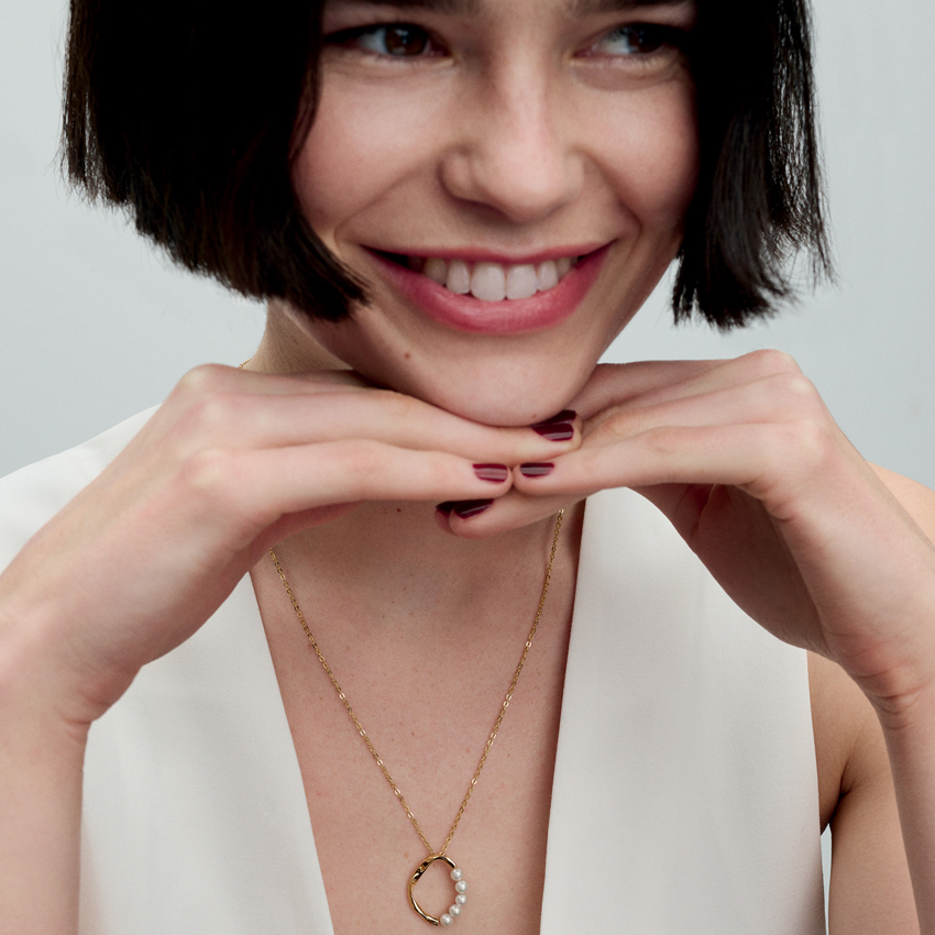 Κολιέ με επίστρωση χρυσού 14Κ & λευκό καλλιεργημένο μαργαριτάρι