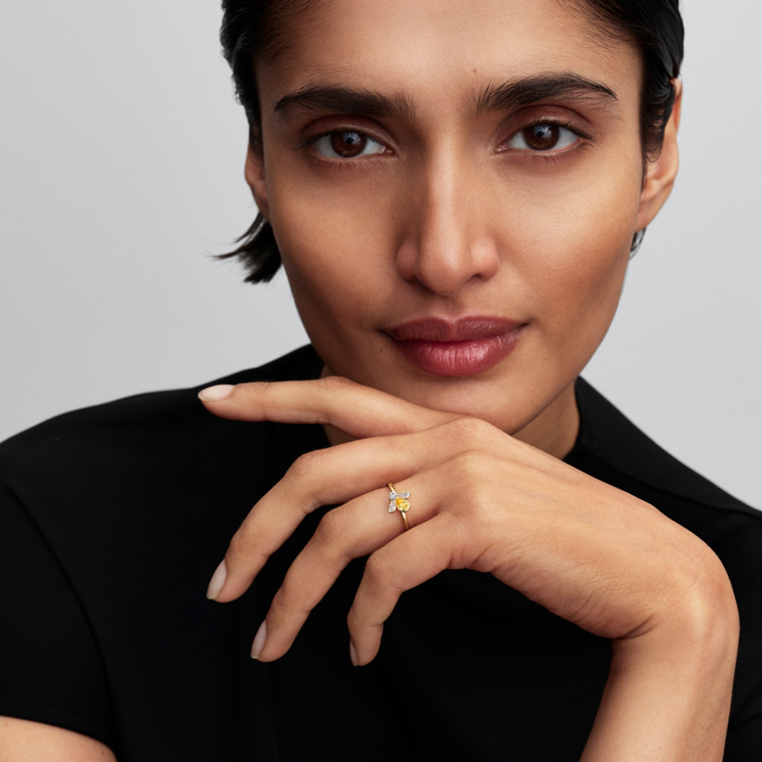 Δαχτυλίδι με επίστρωση χρυσού 14Κ με κίτρινο κρύσταλλο & κυβική ζιρκόνια, μέλισσα