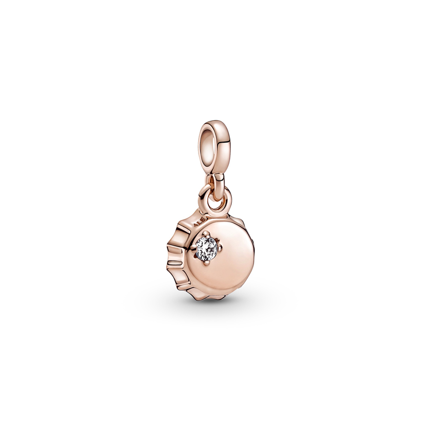 Κρεμαστό μικρό με επίστρωση ροζ χρυσού 14Κ & κυβ. ζιρκόνια, καπάκι μπουκαλιού
