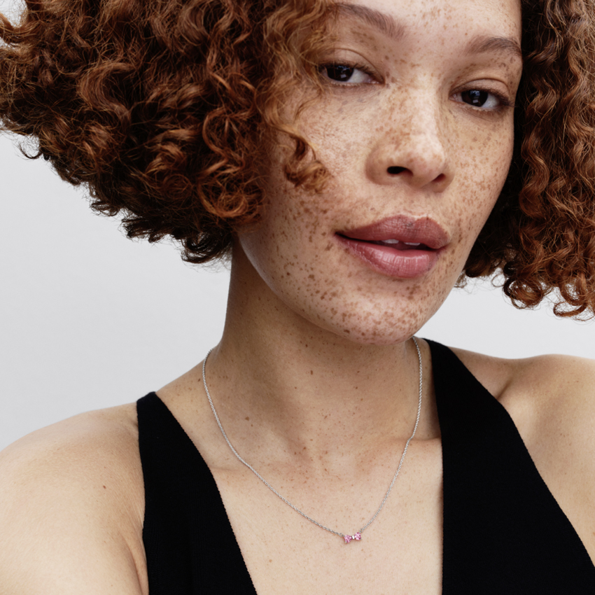 Κολιέ ασ. 925 με ροζ & διάφανη κυβική ζιρκόνια, φιόγκος