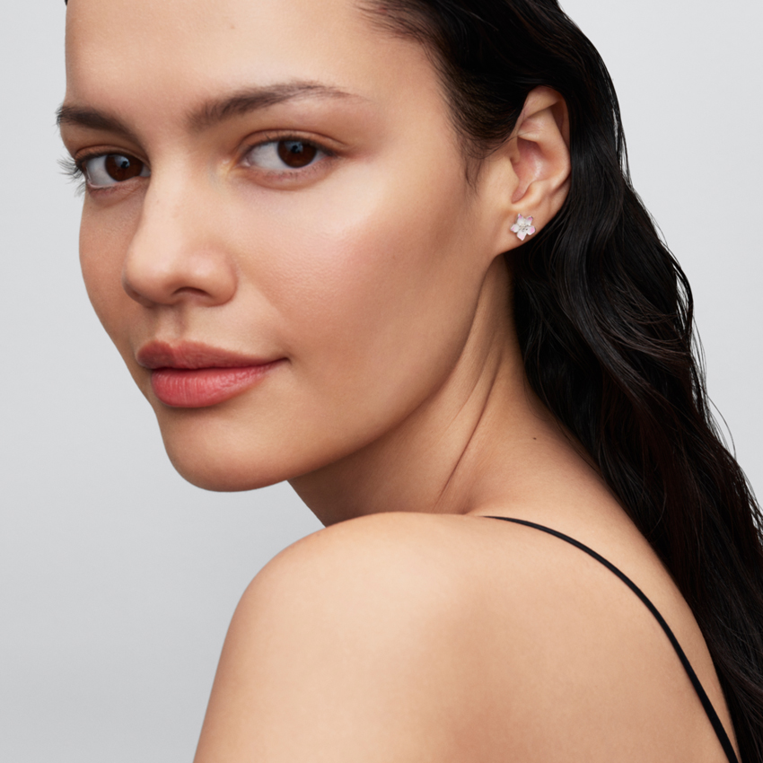 Σκουλαρίκια ασ. 925 με ροζ σμάλτο, άνθη κερασιάς