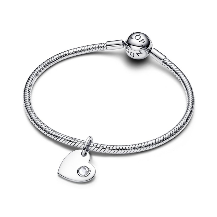 Κρεμαστό σύμβολο ασ. 925 με λευκή κυβική ζιρκόνια, χαρασσόμενη καρδιά