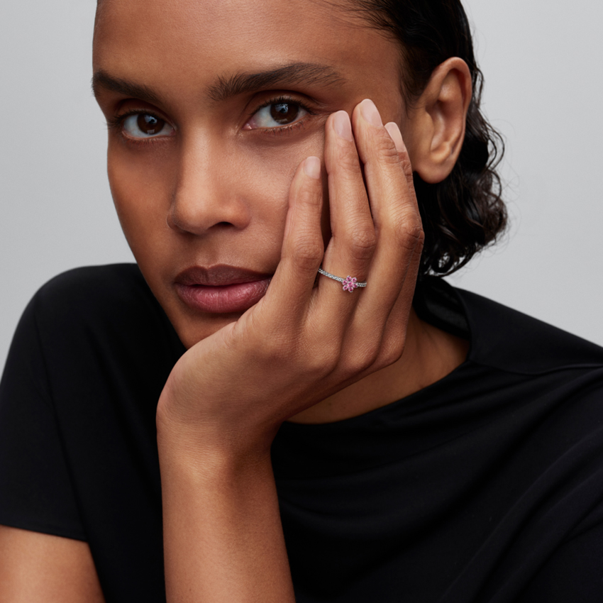 Δαχτυλίδι ασ. 925 με ροζ & λευκή κυβική ζιρκόνια, λουλούδι