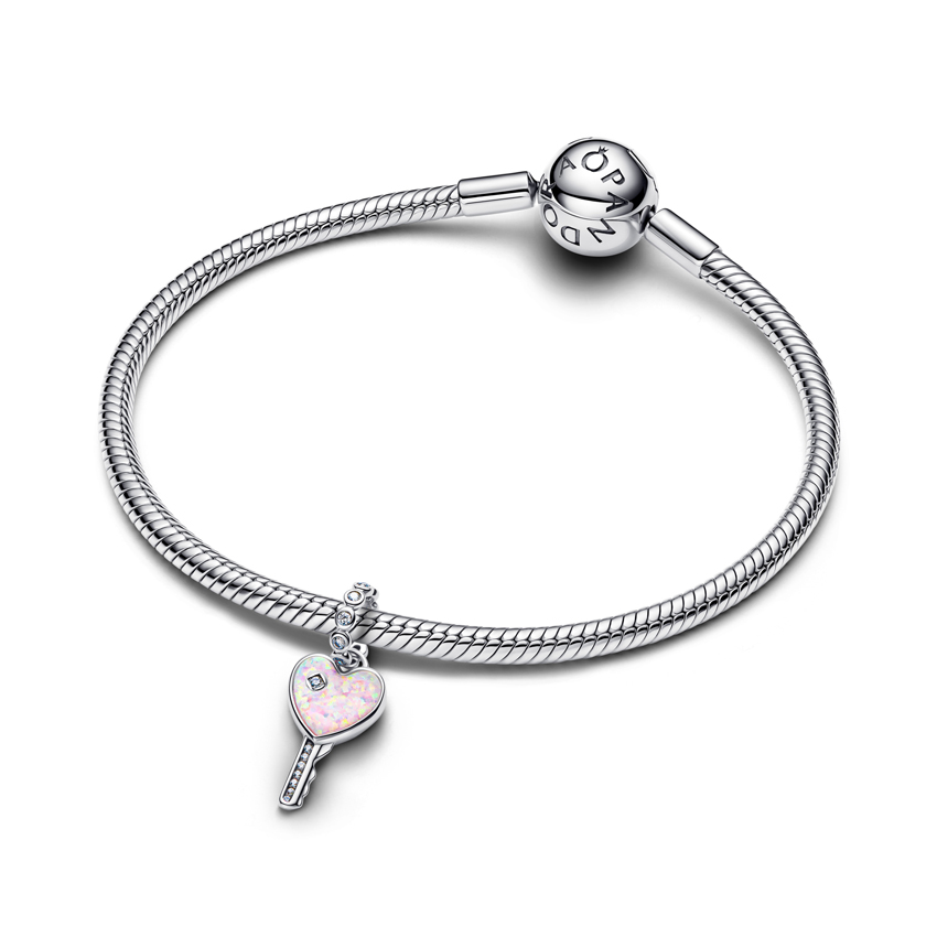 Κρεμαστό σύμβολο ασ. 925 με λευκή κυβική ζιρκόνια & ροζ εργαστηριακό οπάλιο, κλειδί καρδιά