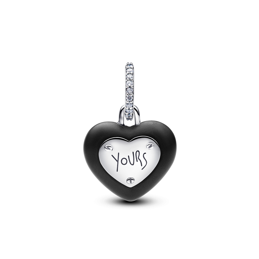 Κρεμαστό σύμβολο ασ. 925 με μαύρο κεραμικό & λευκή κυβική ζιρκόνια, λουκέτο καρδιά