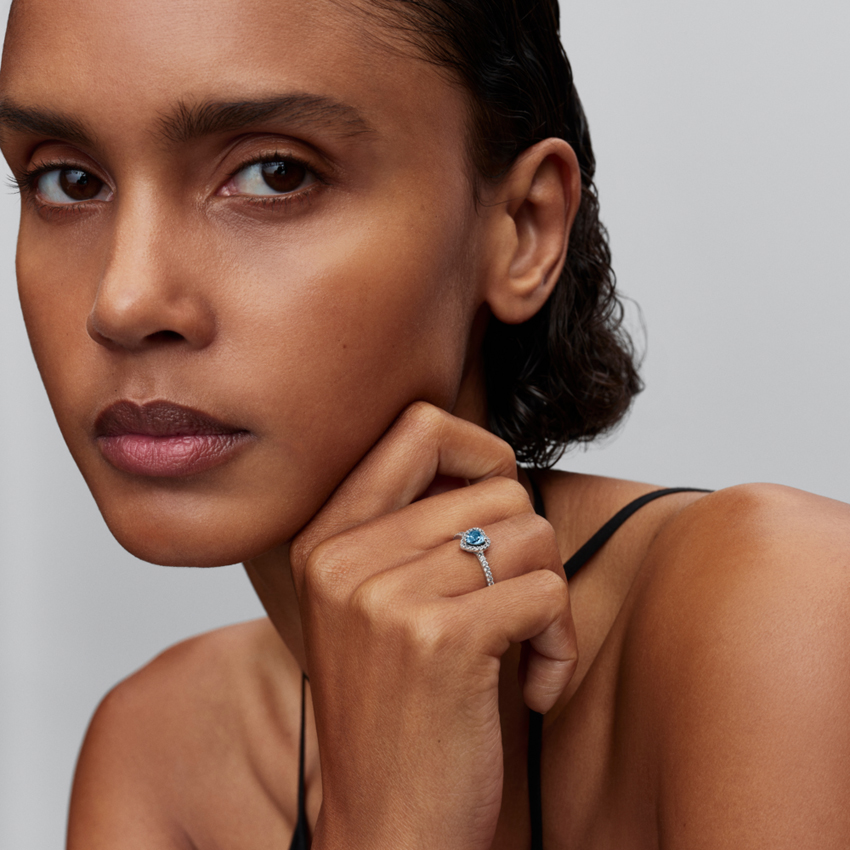 Δαχτυλίδι ασ. 925 με γαλάζιο κρύσταλλο & διάφανη κυβική ζιρκόνια, καρδιά