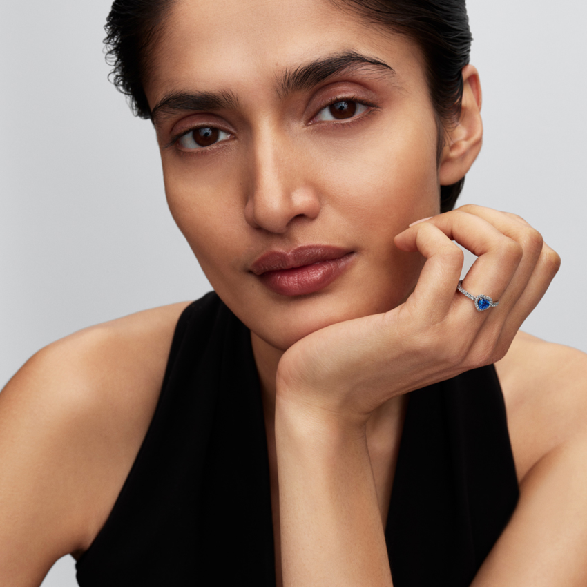 Δαχτυλίδι ασ. 925 με σκούρο μπλε κρύσταλλο & διάφανη κυβική ζιρκόνια, καρδιά