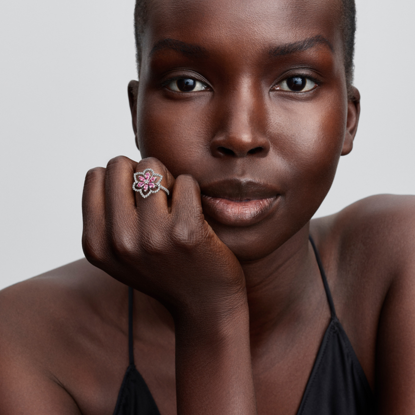 Δαχτυλίδι ασ. 925 με ροζ & λευκή κυβική ζιρκόνια, φύλλα