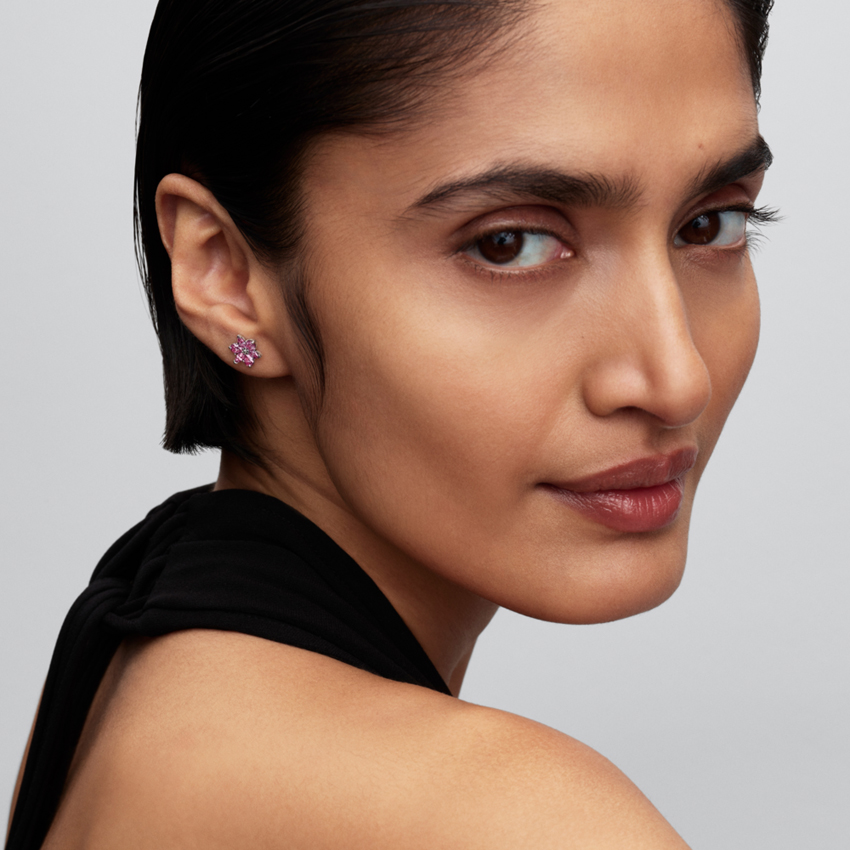 Σκουλαρίκια ασ. 925 με ροζ κυβική ζιρκόνια, φύλλα