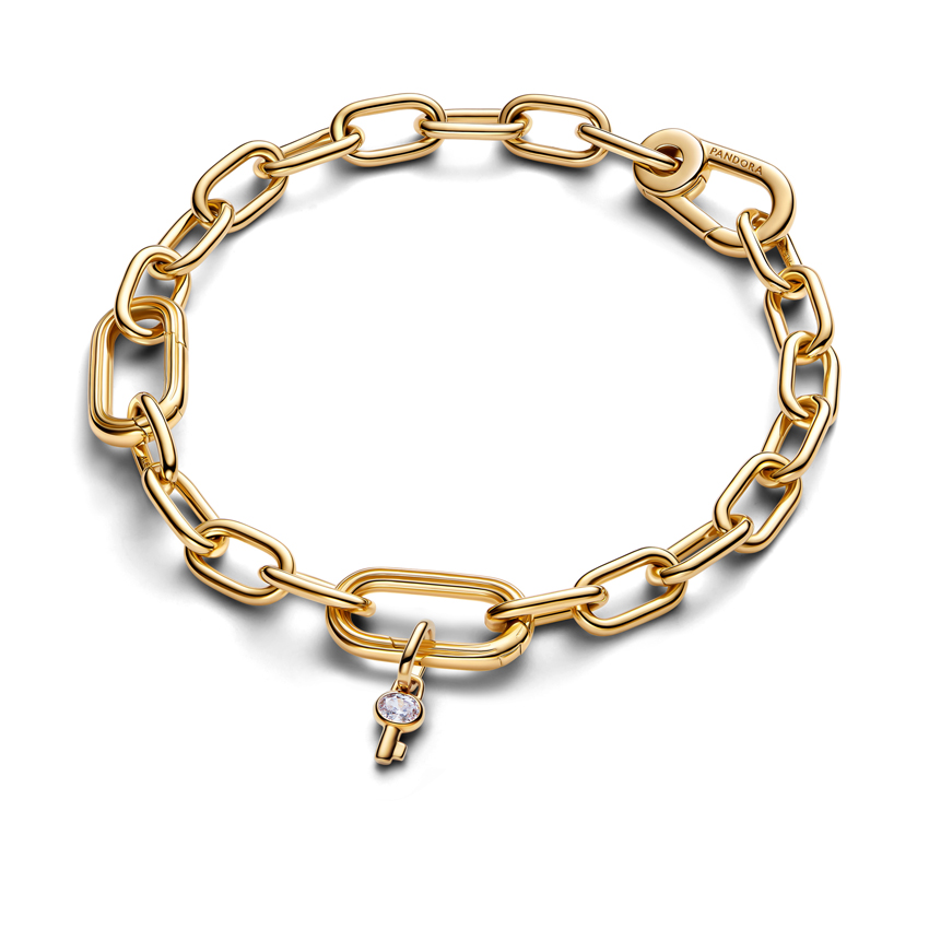 Κρεμαστό μίνι σύμβολο με επίστρωση χρυσού 14Κ και λευκή κυβική ζιρκόνια, κλειδί