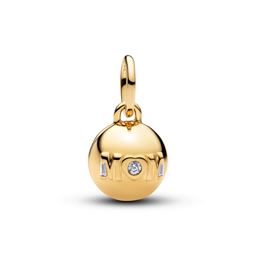 Κρεμαστό σύμβολο με επίστρωση χρυσού 14Κ με διάφανη κυβική ζιρκόνια & μαύρο σμάλτο, ανοιγόμενο Mom