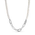 Κολιέ ασ. 925 με κρίκους με λευκό καλλιεργημένο μαργαριτάρι