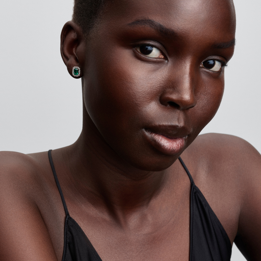 Σκουλαρίκια ασ. 925 με πράσινο κρύσταλλο & διάφανη κυβική ζιρκόνια